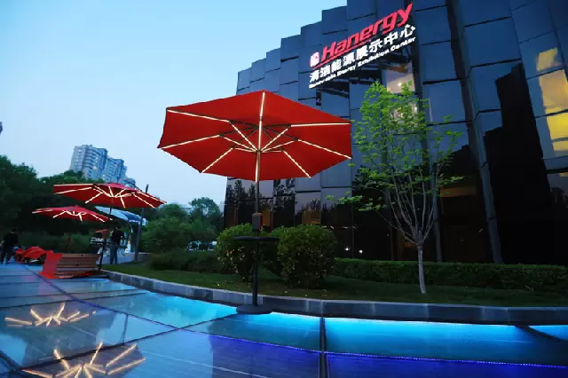 汉能创始人、汉能控股集团董事局主席李河君在启动会现场介绍说:“汉伞是全球首款基于柔性薄膜太阳能技术的多功能伞,拥有159项专利。我们给汉伞取名为Humbrella,这里的大写字母H不光代表Hanergy(汉能),还代表Hope(希望)。它展开直径2.7米,重约9公斤,表面铺设一层柔性薄膜,无论晴天还是阴天均可发电。”