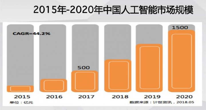 在人工智能方面,计世资讯认为,人工智能市场发展迅猛,年复合增长率达到了44.2%,未来中国AI市场的主要增量将从互联网领域传导到以政府、行业用户为主导的产业数字化领域。