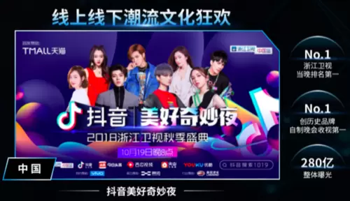 在2018年10月,抖音首次“造节”,打造了抖音美好奇妙夜,创造了历史品牌自制晚会单卫视收视排名第一的效果,让传统文化焕发出了新的魅力,成功引领流行文化。在海外,TikTok与日本“春晚 ”红白歌会合作创造了3600万的观看量新高。