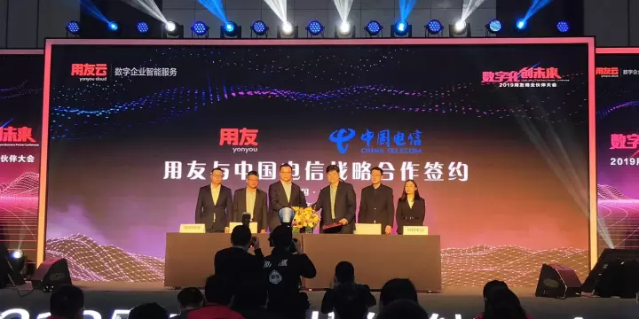 1月18日,以“数字化·创未来”为主题的2019年用友商业伙伴大会在北京隆重召开,本次大会以“开放、合作、共享、共赢”为理念,致力于打造“企业+伙伴+用友”的“数字化商业生态圈”,共同服务企业数字化转型。同时,中国电信天翼云作为唯一一家参会的运营商,与用友网络科技有限公司(以下简称“用友”)正式签约,双方云业务战略合作拉开序幕。