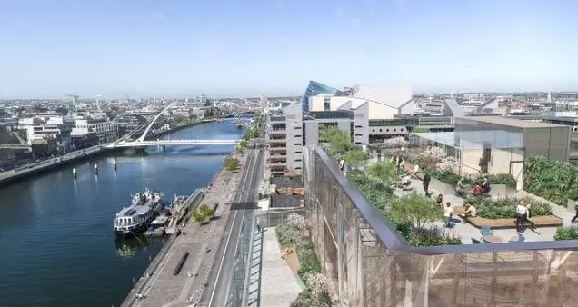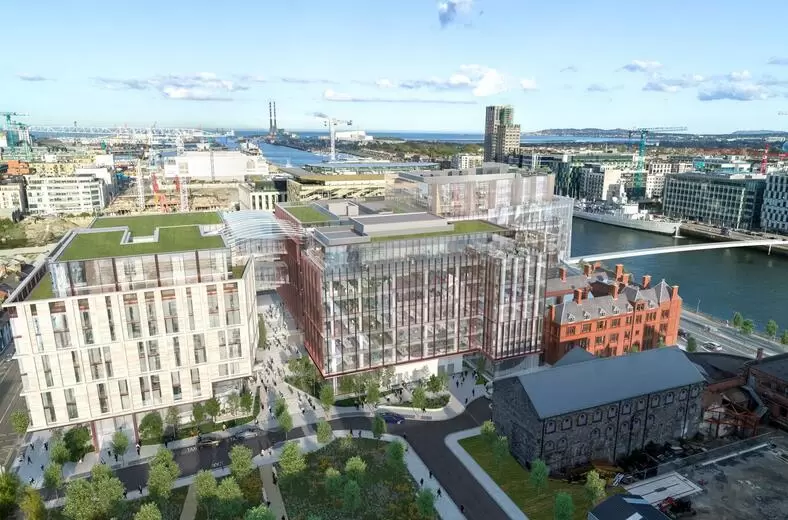 都柏林的新塔实际上将是一个由Liffey河上的四座相互连接的建筑组成的校园。它最终将包括430,000平方英尺,第一批员工预计将在2021年中期的某个时间进入新工厂。