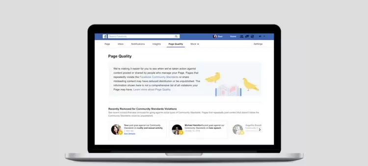 为了解决前两个问题,Facebook表示它正在Facebook页面上引入一个新标签 - “页面质量”标签 - 这将告知那些管理网页的内容因违反标准而被删除的内容以及被评为“假新闻”的内容。
