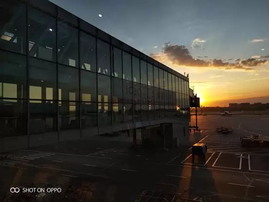 如下图所示,OPPO R15在记录下远处日落时霞光漫天的美景,近处的建筑细节也没有缺失。