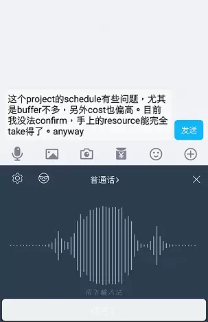 在复杂对话场景下,有了语音输入随心说,就大大减少用户手动切换语音识别模式的操作,畅快用普通话、英文、方言任意一种或中英混合、普通话与方言混合输入,有效提高语音用户日常的便捷性。