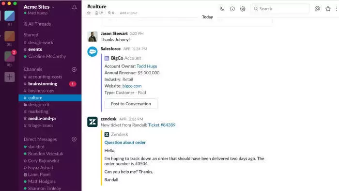Slack将来自第三方(如Salesforce)的专业应用程序集成到其服务中。