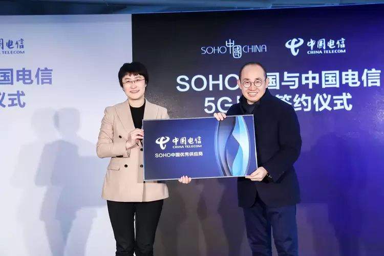 1月29日,SOHO中国与中国电信5G战略合作签约仪式在京举行。双方商定,共同向SOHO中国北京楼宇入驻用户提供5G网络覆盖,以及优质的固移网络服务保障,联合推进5G业务应用及产业合作落地,SOHO中国董事长潘石屹、中国电信北京公司副总经理项煌妹、中国电信北京公司副总经理许洪、华为中国区运营商BG副总裁杨涛等领导出席。