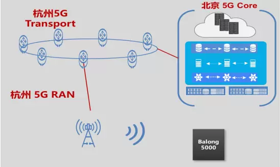 本次测试采用了华为巴龙5000商用芯片,SA核心网采用了集中化部署于北京的核心网,验证了芯片与无线网的空口互通性能,以及SA核心网集中化部署的可行性。