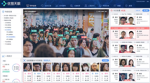 在安防领域,腾讯优图天眼智能安防平台支持亿级身份人脸规模,拥有毫秒级识别速度,迅速完成目标人脸和黑名单照片库的比对,及时返回可疑人脸数据,实现报警通知,助力建立智能追捕逃犯的体系。