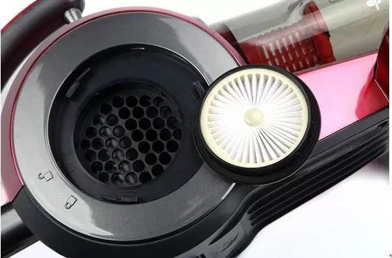 集尘杯和多级旋风过滤系统采用可水洗设计,无耗材,经济环保。卸载方式有明显标识,通过逆时针旋转桶体,转至箭头对应的开锁位置,即可拔下杯体,反过来操作即是安装的整个过程,简单明了。除了集尘杯可以卸载之外,在小狗D-615右侧面的排风口同样支持拆卸。顺时针旋转至开锁图标位置抠开外壳,可以看到里面的HEPA过滤网。