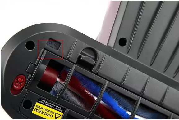 紫外线既然有杀菌的作用,自然对人体也会有一定危害,但对于专家型吸尘器品牌来说,这种问题绝对不会发生。在小狗D-615使用过程中,当产品离开被照物体时,防紫外线泄露感应器会迅速断开紫外线UV灯(图中红框位置),防止伤人。当距离被照物体3-5CM内,且倾斜角度不超过30度时才会开启,而在使用过程中,脏污探照灯会帮助用户发现更为细小的污垢,便于紫外线UV灯发挥杀菌除螨的作用。