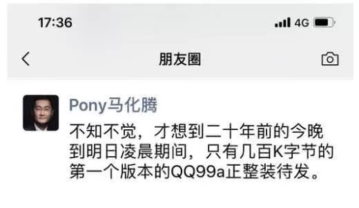 昨日,腾讯公司董事局主席兼CEO马化腾也在朋友圈发文回顾QQ诞生之初的情形。1999年2月10日,腾讯OICQ正式诞生,次年更名为QQ,马化腾是第一批拥有QQ号的用户。当时,恐怕没有人会想到QQ有一天会成为一款国民应用。