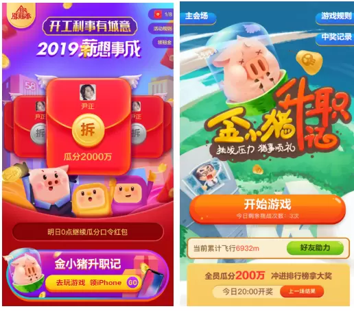 除此之外,58同城“全民涨薪季”还推出了趣味游戏“金小猪升职记”。用户根据游戏排名不仅能瓜分现金大奖,前692名玩家还有机会获得iphone X、华为手机等大奖。游戏过程充满了趣味性,用户通过躲避“老板”投递的“鸭梨”,或者接住福袋,就能获得口令红包。