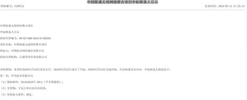 联通41.6万站无线网络整合项目公示,预计华为获超半数份额