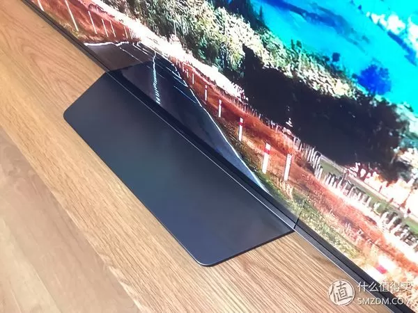 坐在沙发上看,A8F正面底座很简约,整体看上去浑然一体,一眼看过去只有一块屏幕。