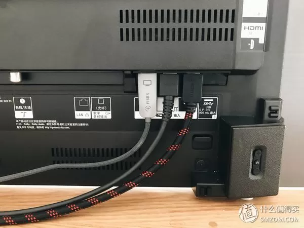 一共配置了4个HDMI接口,其中一个还是HDMI ARC接口。和一般HDMI接口不同的是,ARC接口可以单独输出声音给音箱,更好的解码音频。不过我暂时还用不上,所以三个HDMI接口依次连接的是PS4,Nintendo Switch以及蓝光硬盘机。
