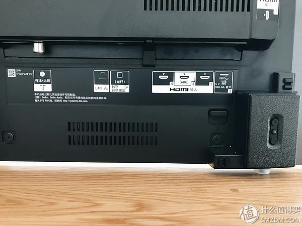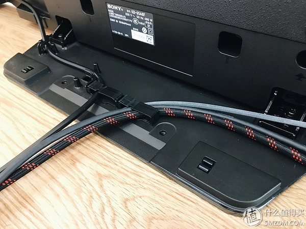 A8F的底座做了一个收纳的卡扣,可以把HDMI视频线、电源线以及网线统统收纳起来。比起大部分电视前面简约后面凌乱的情况,A8F做到了更加细心。