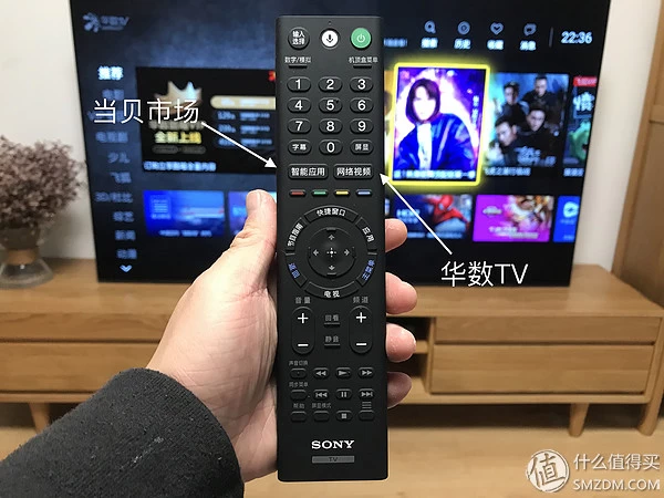 遥控器上面也有当贝软件市场以及华数TV的快捷键按钮,适合像我朋友那样对遥控器无法熟练操作的小白用户。