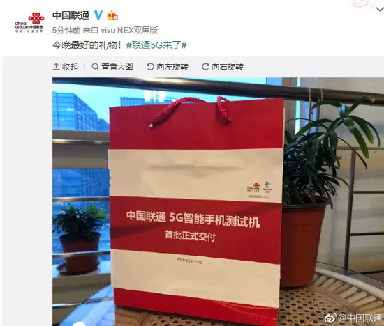 中国联通官方微博2月14日表示,中国联通5G智能手机测试机首批正式交付。