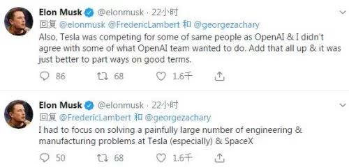 马斯克在推特上表示,他遇到了一些利益冲突,因为特斯拉正与OpenAI争夺一些相同人才。