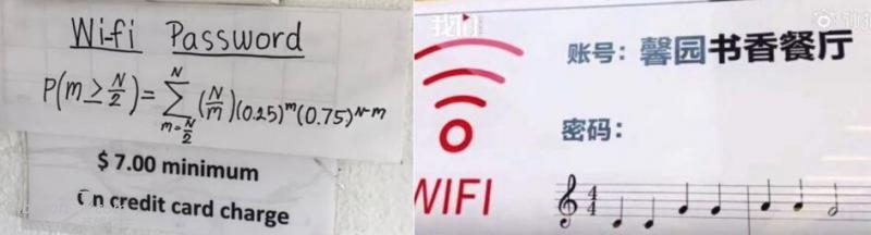 公共WiFi的覆盖,让用户享受到连网的便利。但有些商家设置的“有趣”WiFi密码,譬如数学公式、音符、生僻字、特殊符号等,却让用户感到为难。周末张小姐约朋友逛商场,在奶茶店等人时想连店里的公共WiFi看视频,但在看到店家的WiFi连接提示时,却表示:这道题真不会做。
