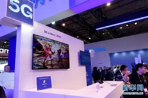 2月25日,在西班牙巴塞罗那,人们在OPPO品牌展区参观。 2019年世界移动通信大会25日在西班牙巴塞罗那开幕,多家企业推出包括5G手机在内的一系列5G产品和技术方案。