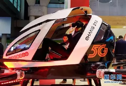 2月26日,在西班牙巴塞罗那,卡塔尔电信集团展出5G空中出租车。 2019年世界移动通信大会25日在西班牙巴塞罗那开幕,多家企业推出包括5G手机在内的一系列5G产品和技术方案。