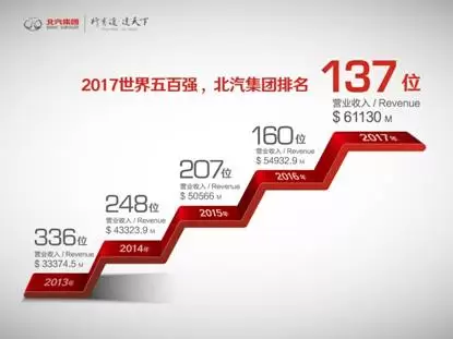 2017北汽集团营业收入达4703亿元,利润增长14.4%,实际缴税增长13.3%,在2017年《财富》世界500强中排名第137位。在谋求企业发展的同时,北汽集团一直注重通过企业的经营行为履行社会责任。