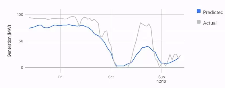 谷歌与其子公司DeepMind合作开发了人工智能,它使用一个神经网络来训练天气预报和历史涡轮数据。