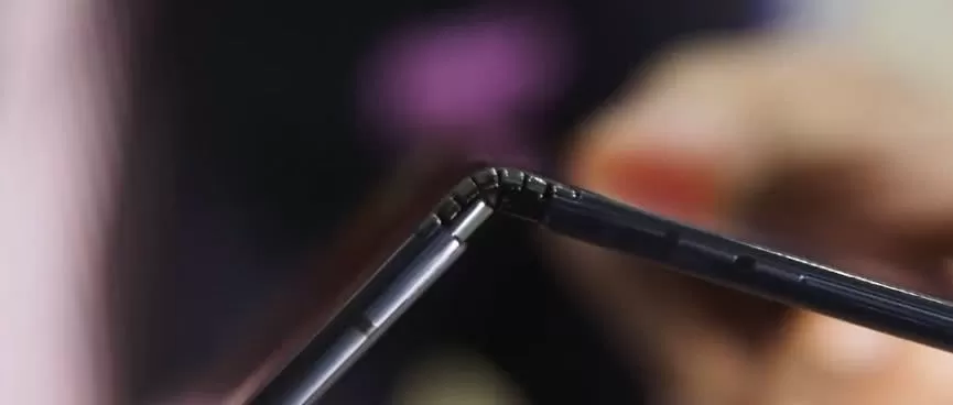 不过,柔派的折叠方式则显得略为生硬,它的柔性铰链无法很好地将上下两层结构贴合在一起,直接将一块大屏弯折,从侧面看,弯曲的部分会留出一大块缝隙,令人觉得有些许“不忍直视”。