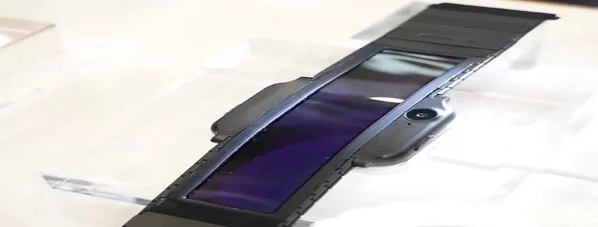 TCL带来了两套折叠屏方案,其一和目前已发布的产品类似;其二则是向中间折叠,而展开后是细长状,颇为独特。