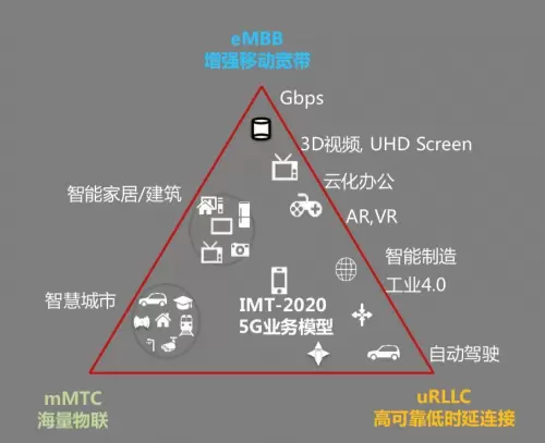 从5G的这些关键能力中,可以预见5G使得万物互联或将成为现实,智慧城市、智能家居、车联网、自动驾驶、VR、AR等应用场景得到网络环境支持,给人们生活乃至各行业带来影响,推进业务升级。技术的关键能力往往决定着其应用的范围。在国际电信联盟(ITU)制定的5G标准(IMT-2020)中,即从5G的这三大关键性指标为依据,划分了5G未来的应用场景。