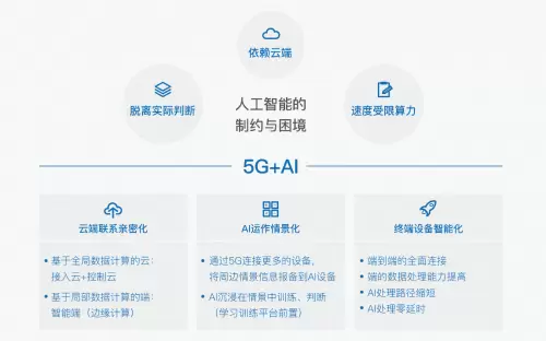 5G和AI的互相作用究竟将给世界带来什么?绝不仅仅是手机和通讯领域这一隅。不言而喻的是,5G与AI的深度融合还将给人们的生活带来前所未有的变化,将开启一个万物感知、万物互联、万物智能的全新时代。