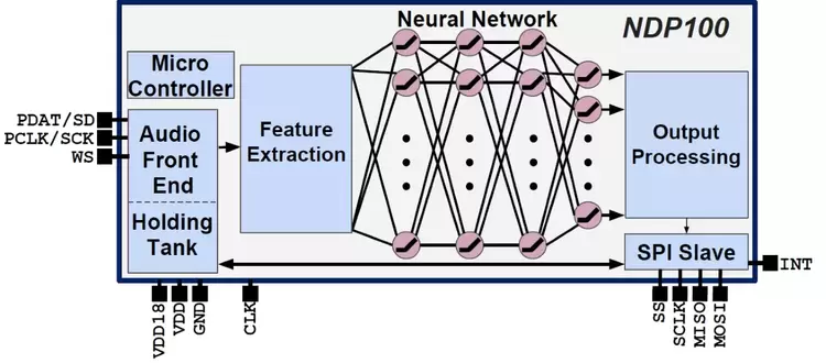 NDP 100 尺寸为1.4x1.8 mm,采用12球WLBGA封装,可以置入空间受限的手机和助听器中。NDP 101采用5×5mm QFN封装,可以从串行快闪记忆体启动,具备8个GPIO,可作为智能喇叭等大型系统中的主要系统单芯片。这两款产品皆搭载具112-KB RAM记忆体的Arm Cortex-M0核心,已经开始出货。