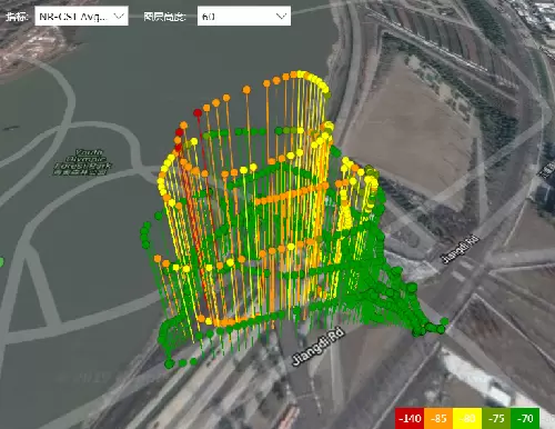 通过测试结果3D覆盖图,可以直观的看出不同高度的5G信号覆盖质量,为5G业务空域信号分析提供了依据。