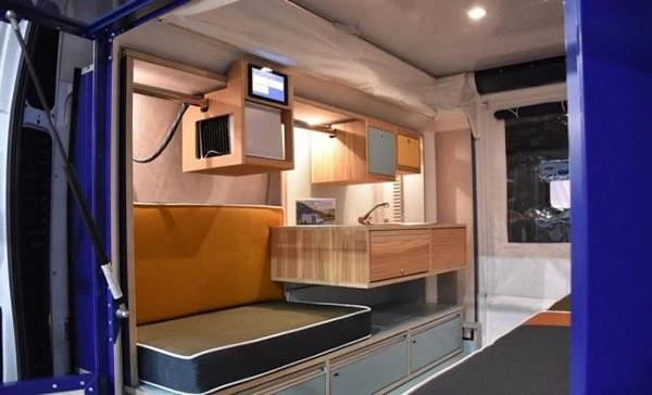 这种通用的即插即用型露营车套件,可以直接插入任何货运车的后部,用以填充空间,并提供智能家居般的生活空间,同时为摩托车,露营装备和其他货物留出空间。在几分钟内打造一辆价格实惠,可以度假的露营车。