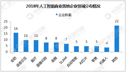 随着人工智能产业的快速发展,中国人工智能产业热度不减,企业纷纷加快布局。在人工智能企业领域分布方面,主要集中在安防、语音交互、医疗行业。据统计数据显示,‘AI+安防’领域的企业共有16家;语音交互的企业有10家,‘AI+医疗’的企业数量为10家,其后分别为图像识别、金融、SLAM、自动驾驶、AI芯片、零售及机器人等领域。