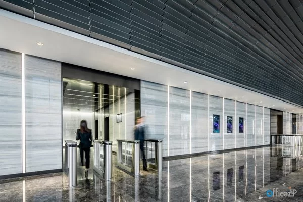 “1个电子平板连接一栋建筑的神经系统,通过这个界面实时监测空间内温度、湿度、CO2、PM2.5及甲醛指数,还可以同步实时调节,1部手机实现智能门禁、智能储物柜、无感通行、云打印、无人零售、智能咖啡机、智能会议室、智能LED操控面板360度操作。而大堂使用的全国唯一嵌入式人脸识别闸机系统,不仅实现人脸识别,更是将识别系统隐藏在闸机内部,真正实现无感通行。”借助5G技术加持,北京金融街中海财富中心OFFICEZIP倾力打造了AI智能打卡系统、健康主理人智能化系统、全域mini分时智能会议系统、AED生命救援系统、智能办公系统、协同管理系统、物业反馈系统、智能停车系统、智能云打印系统等高级配套智能设施,提供顺畅的无线办公体验,构建了全域智能联合办公空间环境。