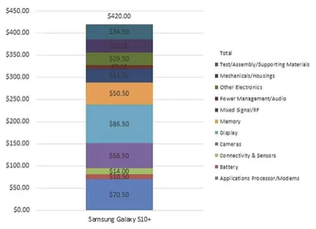 但另一方面,无论是3D人脸识别,还是屏下指纹识别目前都在手机BOM成本中占据重要位置,间接影响到了手机的最终售价。在三星S10+的拆机成本中,6.4英寸的Infinity-O超感官全视屏(含超声波指纹组件),价值86.5美元,是整部手机中最贵的组件。上一代S9+的屏幕组件成本为72.5美元。