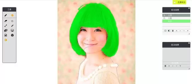 将一张图片上不同的物品进行描边,然后标注为指定的标签。常见的有将人体的头发,人脸,身体分割成不同部分,还有自动驾驶中对道路,建筑物,行人等进行的标注。