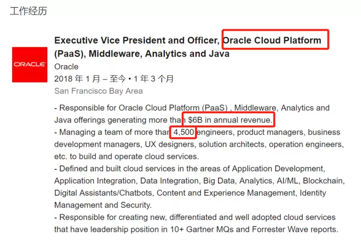 雷锋网查询了阿密特·泽弗瑞的领英资料,注意到他是软件工程师出身,在甲骨文(Oracle)担任的是云平台和中间件产品的执行副总裁兼总经理,管理着4500人的团队,每年为甲骨文创造超过60亿美元的收入。