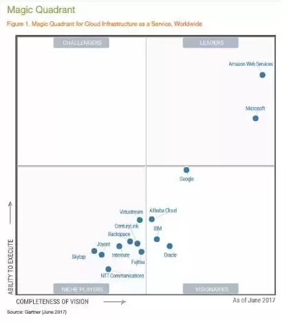 2017年,IaaS 魔力象限,甲骨文领先一大批云厂商。