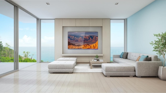 消费升级带火“颜值经济”,创维H20突破性地将渐变工艺应用到电视产品中,创造出流光溢彩般的光感体验。极光色随光而动,产生唯美的渐变效果,符合当下消费者的审美追求。与此同时,创维H20采用无边贴合技术,将屏幕上不可显示图像的驱动电路区域,从7.8mm缩小至5.9mm,使相同尺寸的屏幕,可观看面积更大。屏幕到电视背板之间的距离缩减为7.9mm,无论壁挂还是座装,都展现出产品纤薄之美。