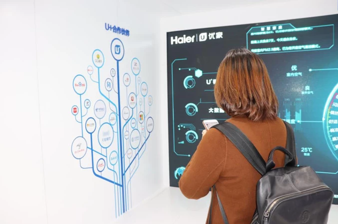龙梦竹:我对海尔智能互联平台孵化的海尔智慧家庭影音机器人特别感兴趣。这款机器人包含了投影、声控和触控功能,能够通过在桌面投射屏幕画面来控制全屋家电的信息状态,并且投射的画面也支持触控操作。我刚巧看到他们在演示弹钢琴的功能,很多观众对它很感兴趣并且在询问价格。当用户询问产品价格的时候,你已经触达到他的消费欲望,而不是停留在叫好不叫座的情况。