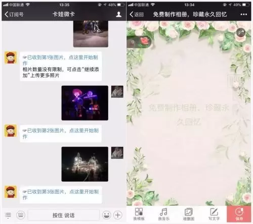 当用户希望制作一些精美而又独特的贺卡传递祝福,通过这些公众号简单操作就可以实现。