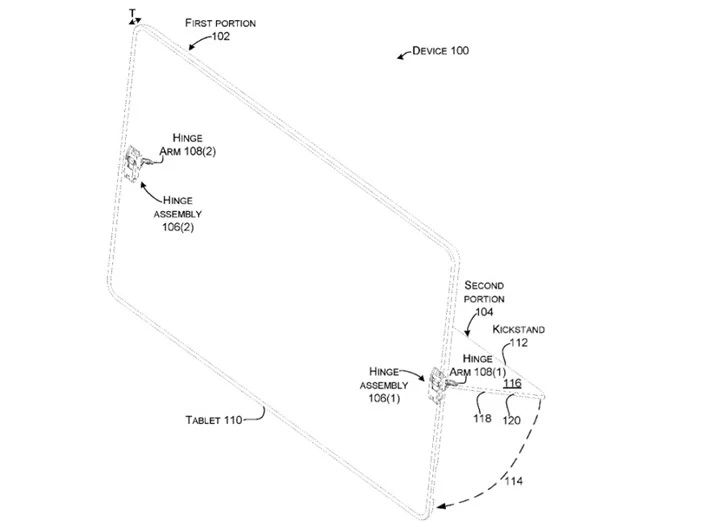 该专利的特色是带有支架的Surface Pro图像,专利强调改进了支架铰链,使Surface Pro能够改变其外形。