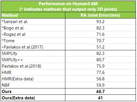 Error)从55.8毫米降低到40.1毫米,Human3.6M上的关节精度误差(3D Joint