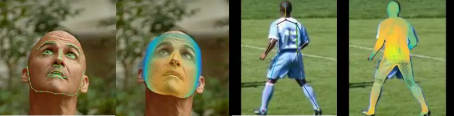 值得一提还有,人体姿态和服饰复杂多样,精度提升意味着对复杂场景的适应性更好,模型更接近真实的情况。如阿凡达、漫威电影、阿丽塔等电影中,都需要专用特效设备与面部贴点来完成精细的人像采集,基于单帧图像的3D人体、人脸重建技术有望彻底颠覆电影视频的拍摄制作,同时降低工业级3D动画合成的门槛。