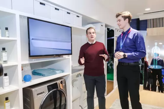 在2019AWE现场,海尔衣联网将这一整套解决方案还原成智慧衣帽间场景和智慧阳台场景,通过可定制的使用场景让参观者亲身体验衣联网提供的智慧生活。走进衣帽间,智能试衣镜能提供3D虚拟试衣服务,并根据天气、场景、喜好进行衣服智能搭配;智能衣柜则可实现衣物精准定位,方便衣物管理,熨烫机能根据衣物面料提供专业熨烫服务。除了衣物智能洗护,海尔衣联网还将服务拓展至鞋领域,智能洗鞋机通过最领先的AI图像识别技术,一键洗鞋,鞋护理机则完美解决鞋子护理的难题,共同为用户提供专属洗涤、杀菌除味等洗护存成套解决方案。