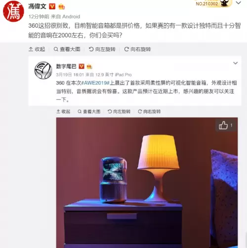 不过有网友表示,从目前的市场来看,柔性屏的成本普遍非常高,三星、华为发布的柔性折叠屏手机,价格甚至超越了iPhone XS,在13000元以上。如果360柔性屏智能音箱量产投入市场,其价格或许会在2000元以上,可能超过苹果的HomePod,360或许凭借该款产品冲击高端智能音箱市场。
