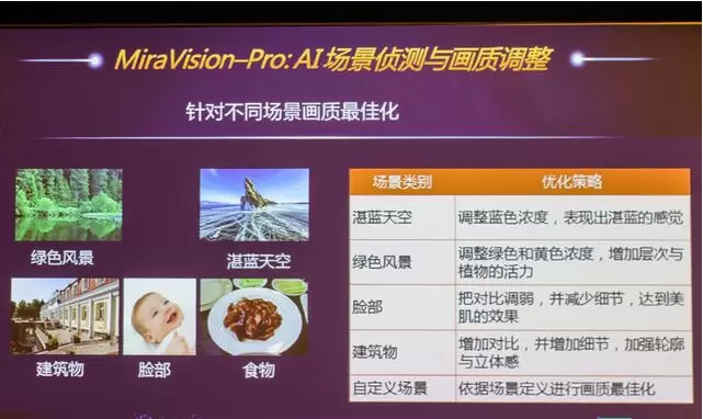 在画质提升方面,联发科技与晨星的既有技术,整合集团的影像增强技术MiraVision、 跨终端人工智能平台NeuroPilot及人工智能处理器APU等备受业界肯定的技术,融合前沿AI科技为消费者提供有别于以往的优质完善的视觉体验。以MiraVision-Pro为例,它具有智能图像调节功能,可调整色彩饱和度、亮度、分辨率及帧率,有效提升整体视觉质量,同时人工智能技术也能为用户带来更加人性化的交互方式。